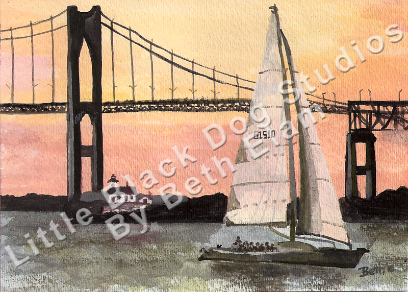 "I'm an avid swimmer, and I've had a unique perspective of this bridge. I swam from Jamestown to Newport under this bridge to raise money for Save the Bay. This is also special to me because when Forest and I first moved east from Indiana, we moved to Rhode Island. I spend many fun nights in Newport during the summer, and Forest had many fun walks through Beavertail climbing on the rocks."